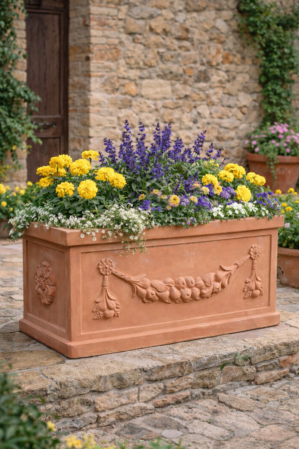 Ce bac rectangulaire classique en terre cuite d’Impruneta séduit par son design épuré, intemporel et par l’excellence de l’artisanat italien. Sa forme rectangulaire simple en fait une jardinière polyvalente, parfaitement adaptée à tous types de plantations, qu’il s’agisse de fleurs, d’herbes aromatiques ou de plantes ornementales.