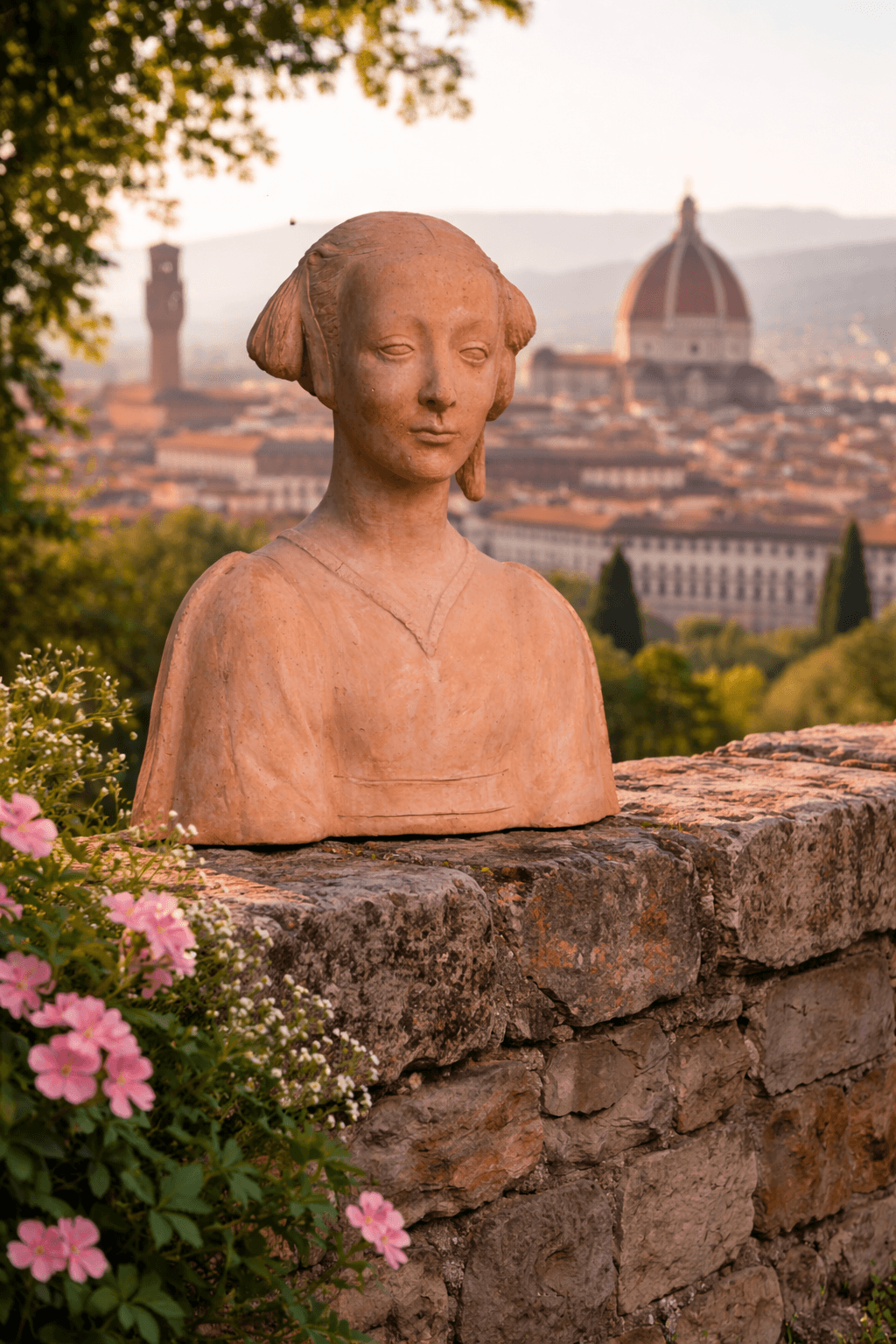Cette élégante buste en terre cuite représente une noble dame stylisée dans le style classique de la Renaissance. La sculpture s’inspire de modèles historiques de la première Renaissance italienne et est souvent désignée comme « Nobildonna d’après Donatello ». Avec son expression calme et harmonieuse ainsi que ses traits délicatement modelés, cette buste constitue un objet décoratif raffiné pour le jardin, la terrasse, les entrées ou les espaces intérieurs.