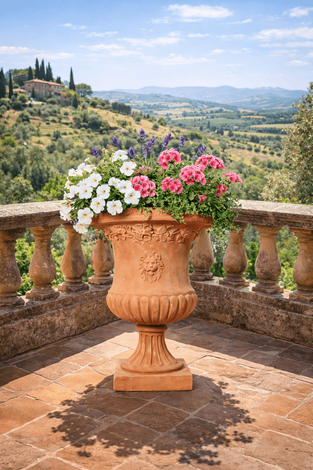 La coupe en terre cuite d’Impruneta de style Médicis est une pièce décorative d’exception, réalisée selon la plus pure tradition artisanale toscane. Fabriquée à partir de terre cuite originale d’Impruneta, reconnue pour sa résistance au gel, elle incarne l’alliance parfaite entre élégance classique, formes intemporelles et charme méditerranéen. Sa teinte chaleureuse et sa texture finement travaillée en font un véritable point focal, aussi bien au jardin, sur une terrasse que dans un espace intérieur.