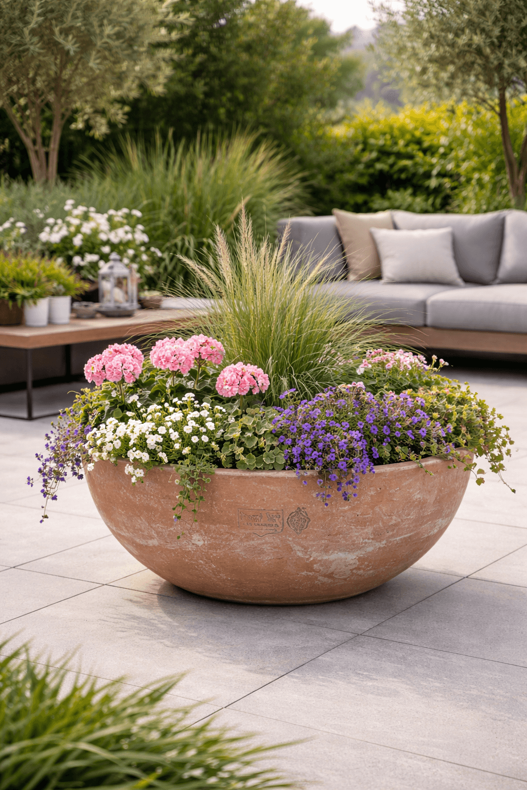 La coupe en terre cuite est résistante au gel jusqu’à –30 °C et convient parfaitement à une utilisation extérieure tout au long de l’année.