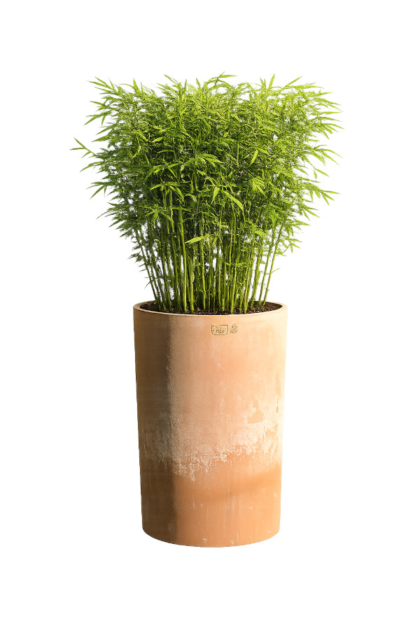 Grâce à une cuisson à très haute température, ce cylindre en terre cuite est entièrement résistant au gel jusqu’à –30 °C et convient parfaitement à une utilisation extérieure toute l’année. Il est proposé en plusieurs dimensions et finitions ; le prix indiqué correspond à la teinte terracotta classique.
