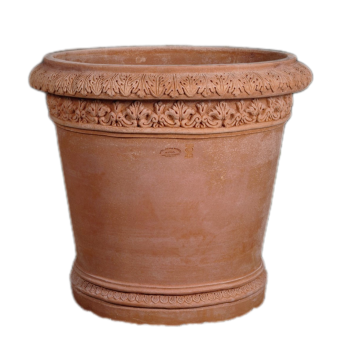 Chaque pot est façonné à la main en Toscane selon un savoir-faire traditionnel. Les nuances chaudes, rouge brun naturel de la terre cuite d’Impruneta rendent chaque pièce unique et en font un véritable élément de décoration méditerranéenne.