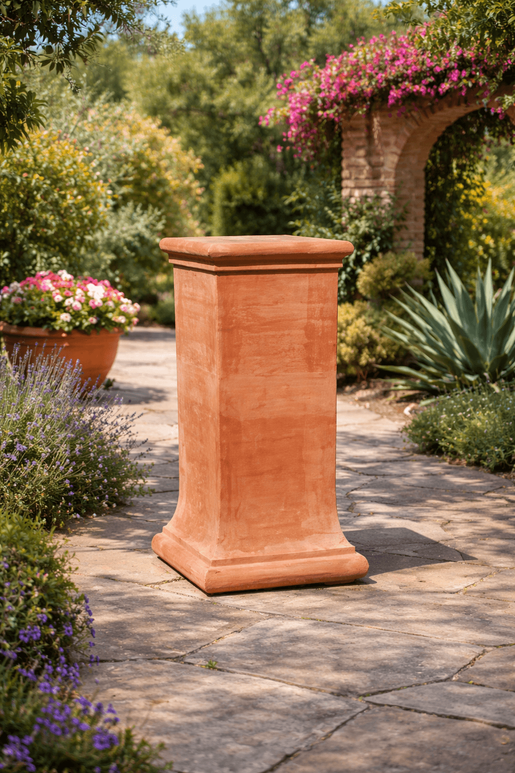 Polyvalente, cette colonne en terre cuite est idéale pour surélever et mettre en valeur statues, sculptures, bustes ou pots de plantes. Qu’il s’agisse d’objets richement décorés ou de formes plus épurées, tous trouvent sur cette colonne classique un support esthétique et équilibré. Elle peut être utilisée comme élément décoratif central ou pour structurer visuellement jardins, terrasses, cours intérieures et espaces extérieurs représentatifs.