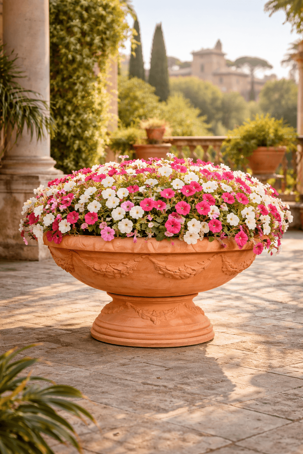Fabriquée à partir d’argile originale d’Impruneta, cette coupe décorative n’est pas seulement esthétique mais aussi extrêmement robuste. Elle est résistante au gel jusqu’à −30 °C, durable et parfaitement adaptée aux conditions extérieures tout au long de l’année.
