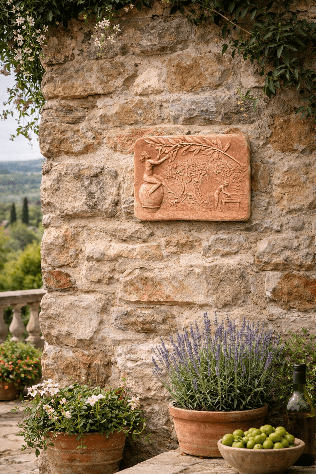 Avec ses dimensions harmonieuses, ce relief décoratif peut être utilisé comme élément central de décoration murale, accent méditerranéen raffiné ou complément élégant pour jardins, terrasses et espaces de vie.