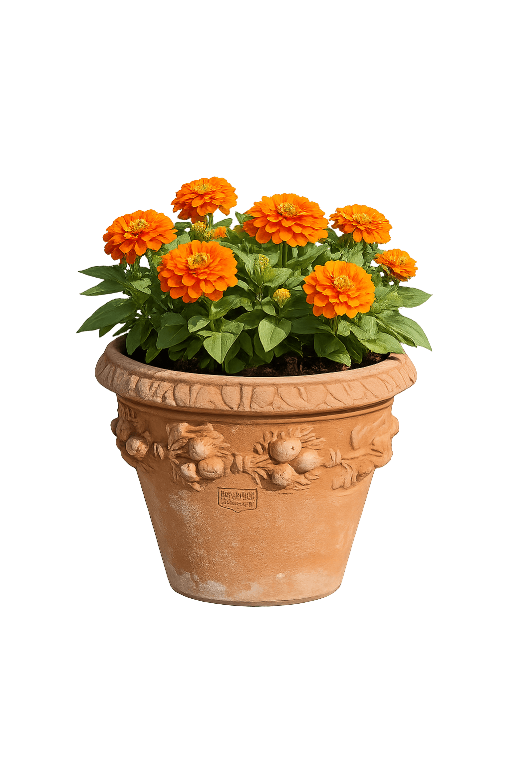 La surface du pot est délicatement ornée d’un décor de prunes finement travaillé, qui lui confère un style classique et discret. Sa teinte chaude et naturelle de terracotta met particulièrement en valeur les plantes vertes, les herbes aromatiques et les compositions végétales d’inspiration méditerranéenne.