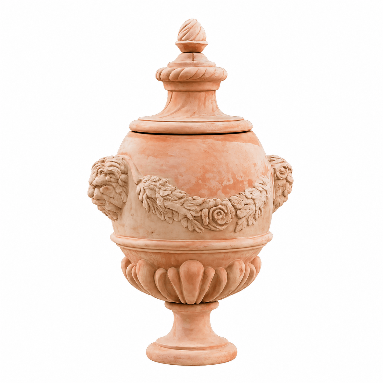 Cette vase haut de gamme en terre cuite d’Impruneta incarne parfaitement l’alliance entre artisanat traditionnel italien et élégance intemporelle. Fabriquée à partir d’argile toscane authentique, elle séduit par sa teinte chaude et naturelle ainsi que par ses ornements raffinés composés de motifs floraux et de têtes de lion finement sculptées.