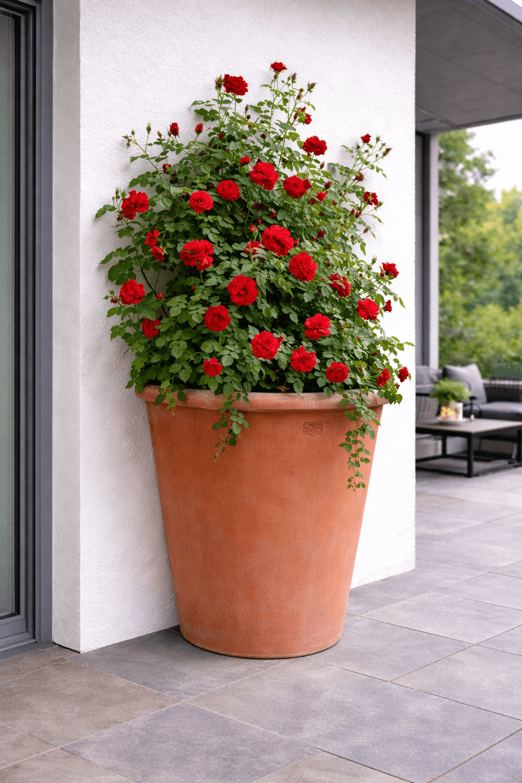 Grâce à sa forme harmonieuse, légèrement évasée vers le bas, le Vaso Pejrone a parete s’intègre naturellement aux murs de jardin, façades de maison et terrasses. Sa face arrière aplatie permet une fixation murale stable et peu encombrante, tout en offrant une profondeur et un volume généreux. Les racines des rosiers et autres plantes profondes disposent ainsi de conditions idéales pour un développement sain et vigoureux.