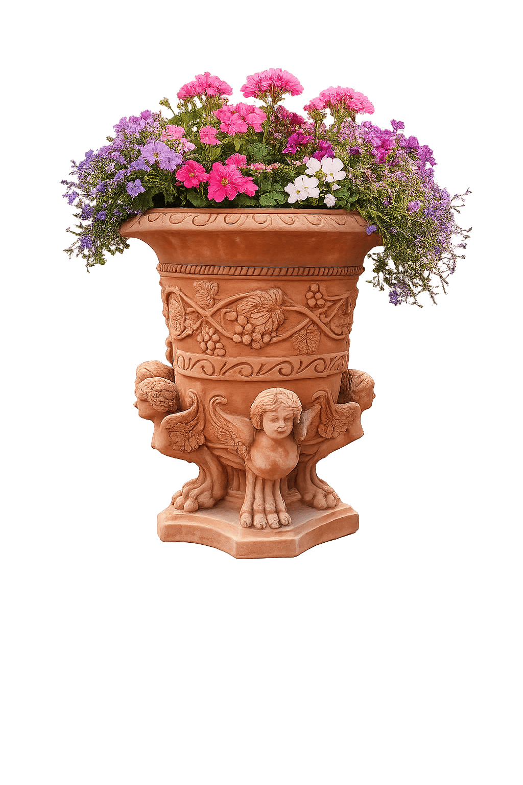 Cette vase en terre cuite exclusive est une véritable œuvre d’art issue de l’artisanat traditionnel. Sa riche ornementation, ses reliefs finement travaillés et ses proportions harmonieuses associent élégance classique et charme méditerranéen. Inspirée des vases majestueux des villas et palais antiques, elle apporte une touche authentique de culture des jardins italiens à tout espace extérieur ou intérieur.